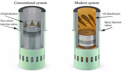 Modern systems aim for fresh injections of cylinder oil each stroke, precise dosing, and atomised delivery to improve oil film stability. HJ Lubricators’ SIP (Swirl Injection Principle) ensures better coverage at the cylinder top, where scuffing risks are highest due to extreme pressure and temperature, leading to potential breakdown of the hydrodynamic oil film.